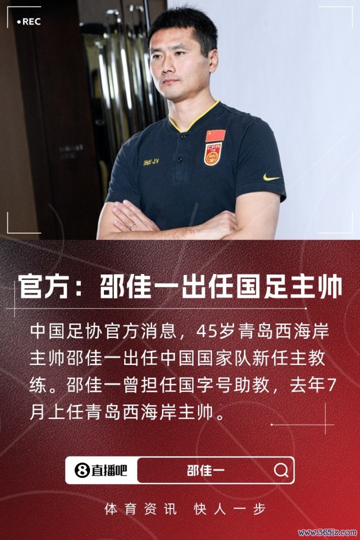 11月5日讯 中国足协官方音问,青岛西海岸主解说、前国脚邵佳一出任中国男足新任主帅。