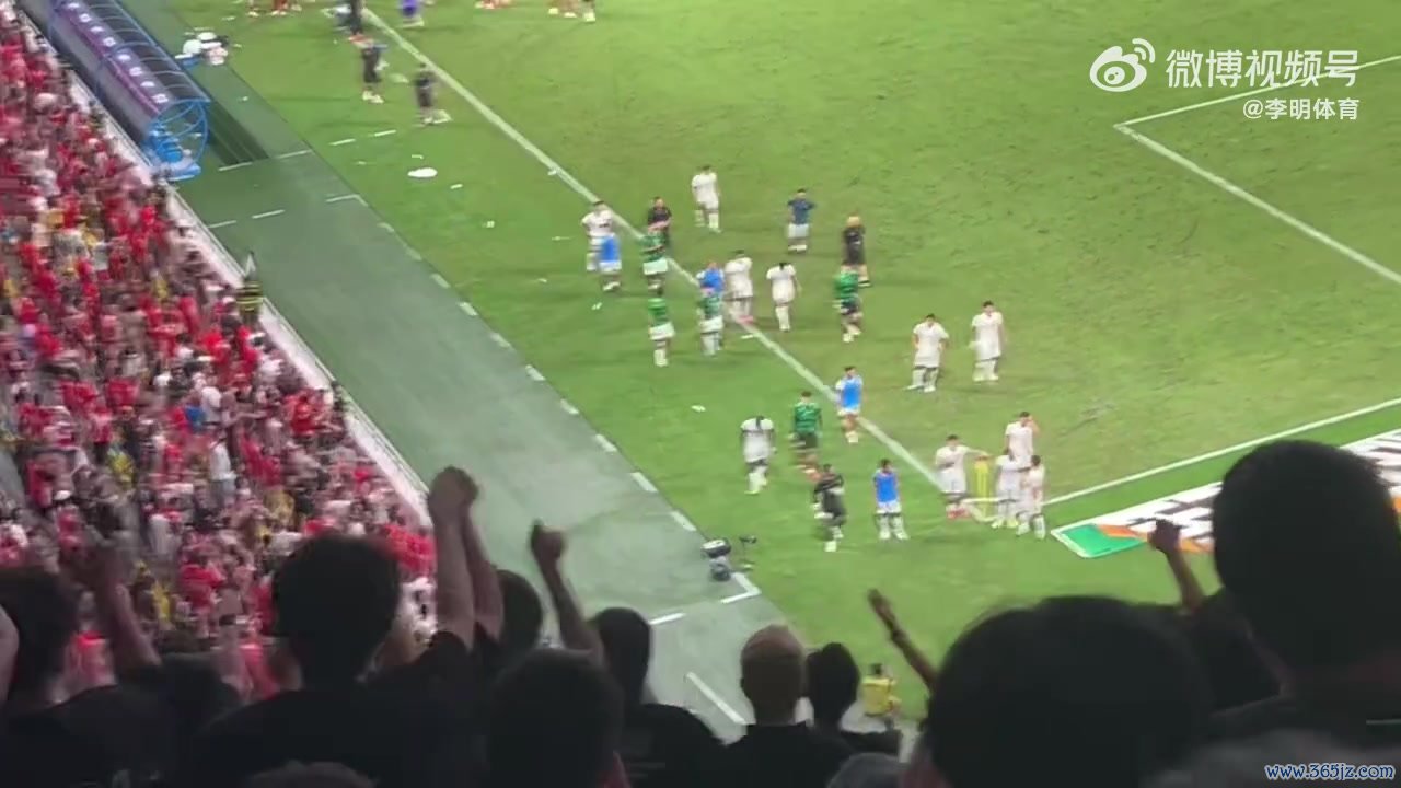 赛后,两队球员相互请安时分,看台一角的国安球迷集体高呼:“丢东谈主现眼!”