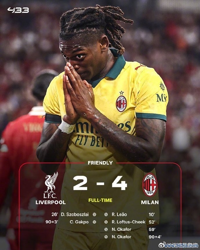 7月26日讯 季前友谊赛,利物浦2-4不敌AC米兰。