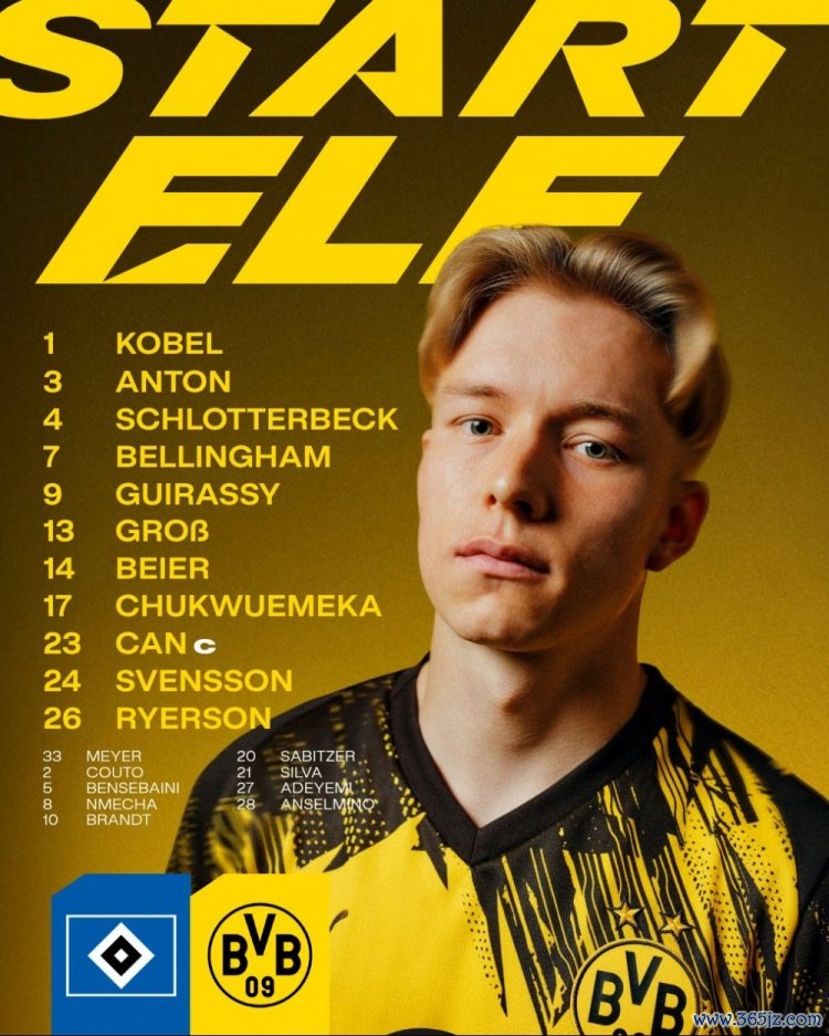 1-科贝尔,3-安东,4-施洛特贝克,7-小贝林厄姆,9-吉拉西,13-格罗斯,14-拜尔,17-丘库埃梅卡,23-埃姆雷-詹,24-闲雅松,26-莱尔森