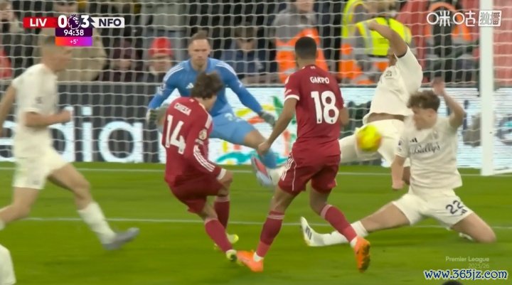 11月23日讯 在利物浦0-3不敌诺丁汉丛林的补时终末时辰,基耶萨近距离抽射,被本场的进球元勋穆里略用裆部挡出。
