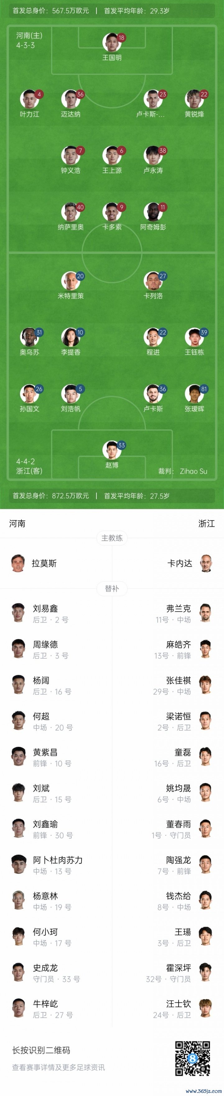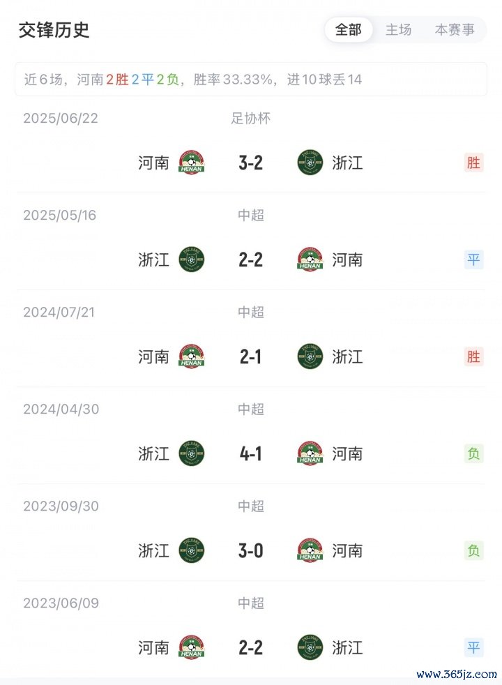 10月25日讯 19点中超第28轮,河南主场迎战浙江。河南近4轮3胜1负,浙江近3轮一皆战平。
