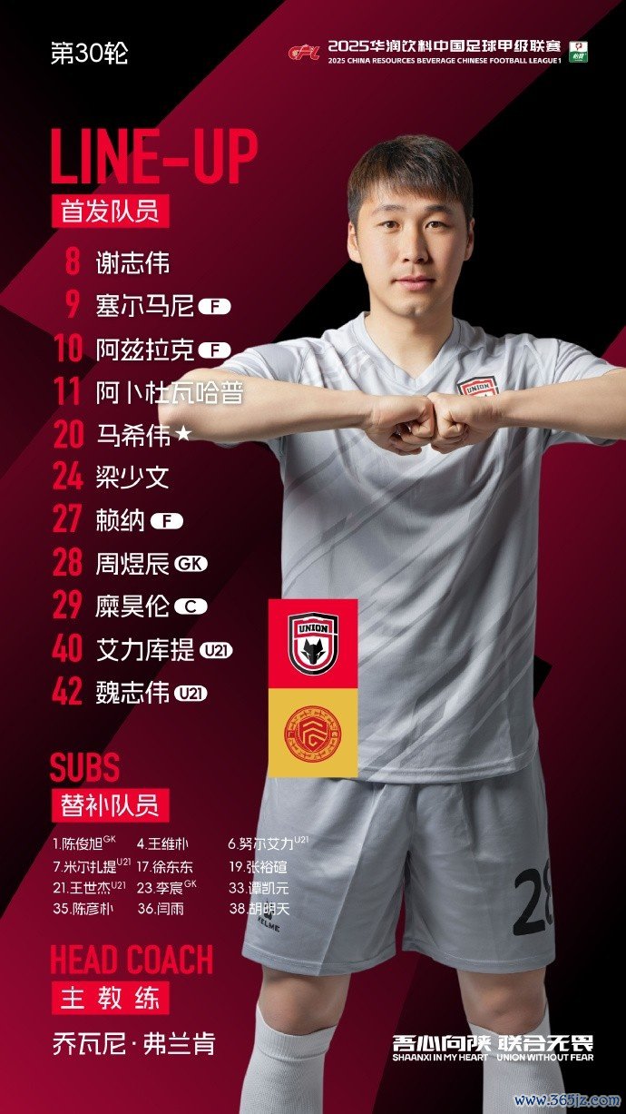 中甲第30轮对阵广西平果,陕西聚合首发出炉!