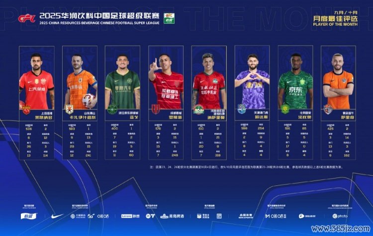 注:因第23、24、26轮部分比赛调赛至10月4日进行,故9/10月月度评比规模为联赛第23-28轮贪图6轮比赛,参选球员数据以上述6轮比赛数据为准。