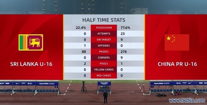 11月28日讯 U17亚洲杯预选赛,U16国足上半场3-0向上斯里兰卡U16队。时间统计表示,U16国足在控球率、射门次数上占据压倒性上风。
