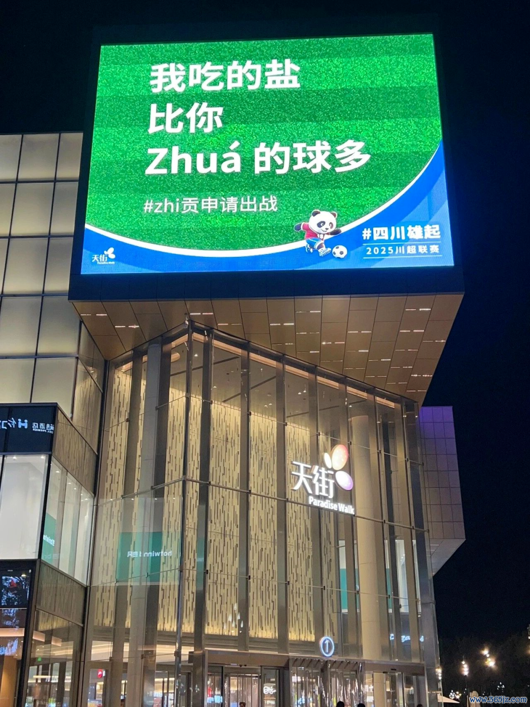 赛场以外,成皆龙湖天街以城市潮水C位之姿,当先甩出一波硬核应援:户外大屏连番轰炸“川超”爆梗神标语,火速出圈并稳占今秋热门话题!