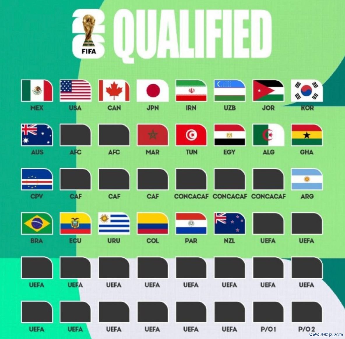 也曾晋级的22个队伍中,亚洲球队有6支,南好意思球队有6支,大洋洲有1支,非洲亦然6支,中北好意思及加勒比地区则是3支(齐是人)。欧洲的16个限额,尚无一个也曾投诚。接下来,非洲还要产生3个限额、亚洲还要产生2个限额。