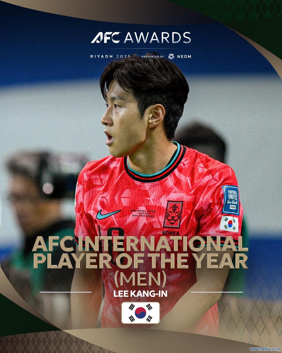 雷速体育10月17日讯 亚足联受奖仪式至本日举行,最终当今遵循于巴黎圣日耳曼的韩国先锋李刚仁成效当选今年度亚足联最好外洋球员。