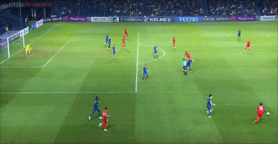 第18分钟,王燊超后点包抄垫射,球没能压住